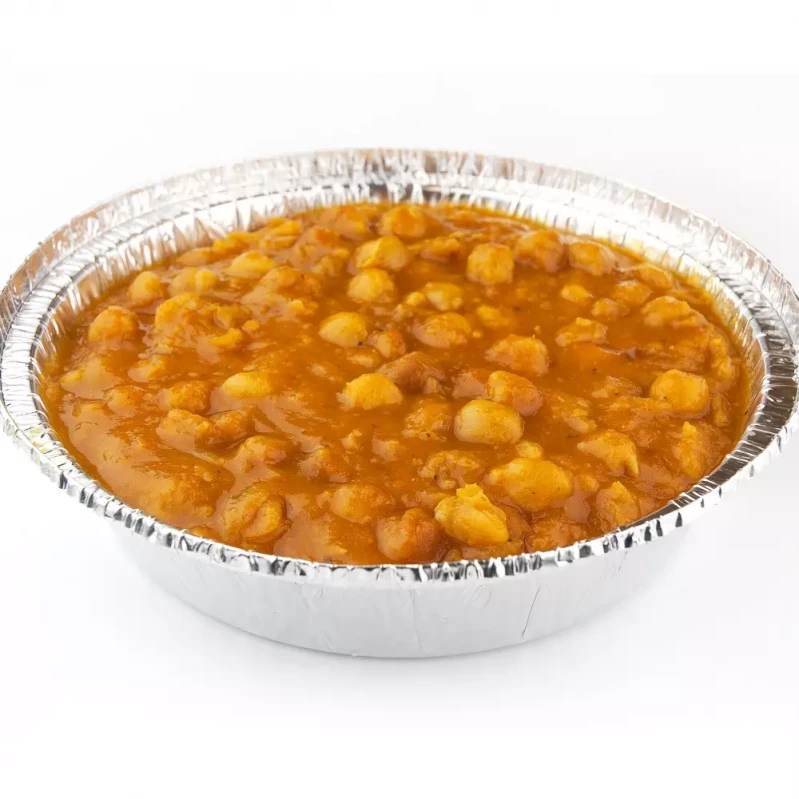 Chickpeas cooked with tomatoes, fresh ginger, onions and exotic spices.