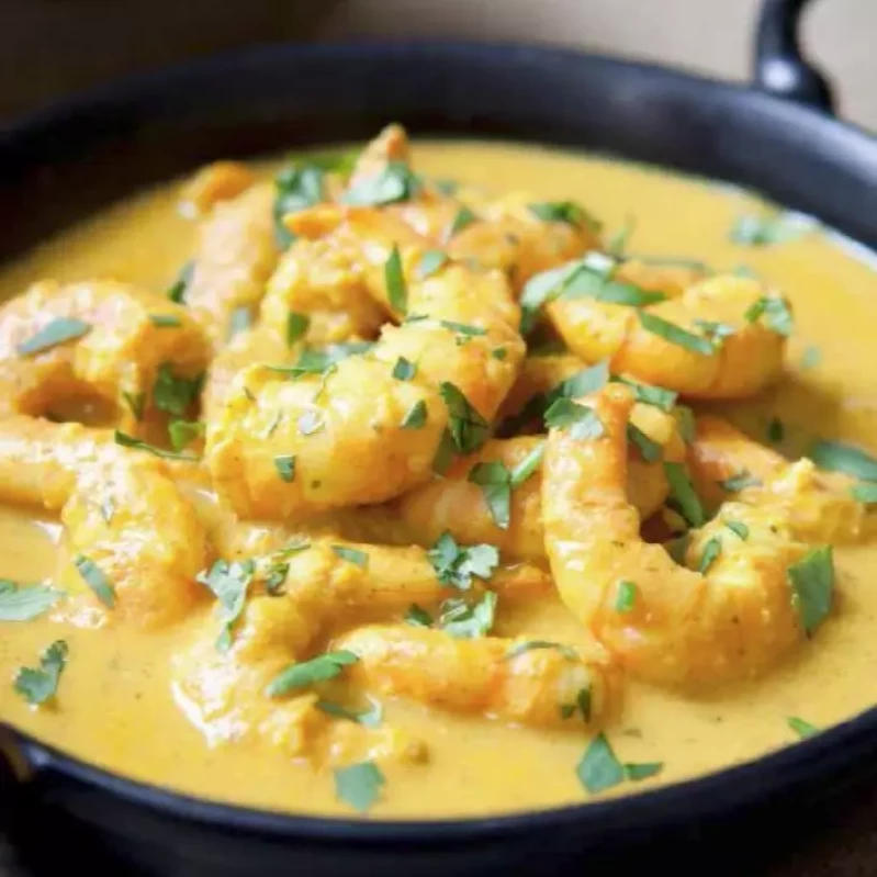 Prawn delicately cooked in a seasoned cream sauce with onion and ground cashew nuts.
